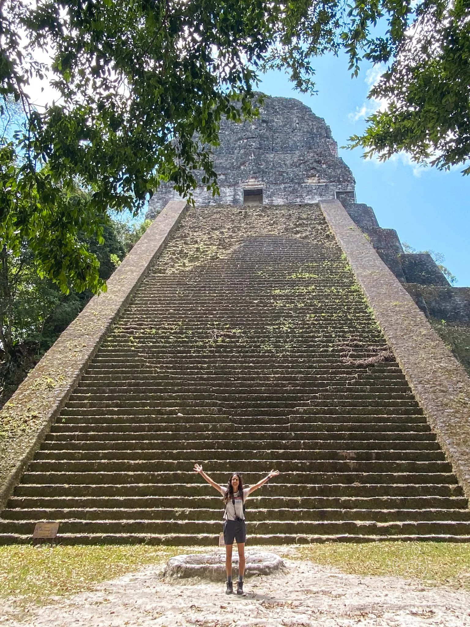 Next up was Templo IV, the highest building on the complex and one of the highest pre-Colombian structures known. The climb to the top is intense! The wooden staircase is more like a ladder, and as the heat of the day was properly settling in, it took a lot of effort to get up there, but the view… totally worth it.